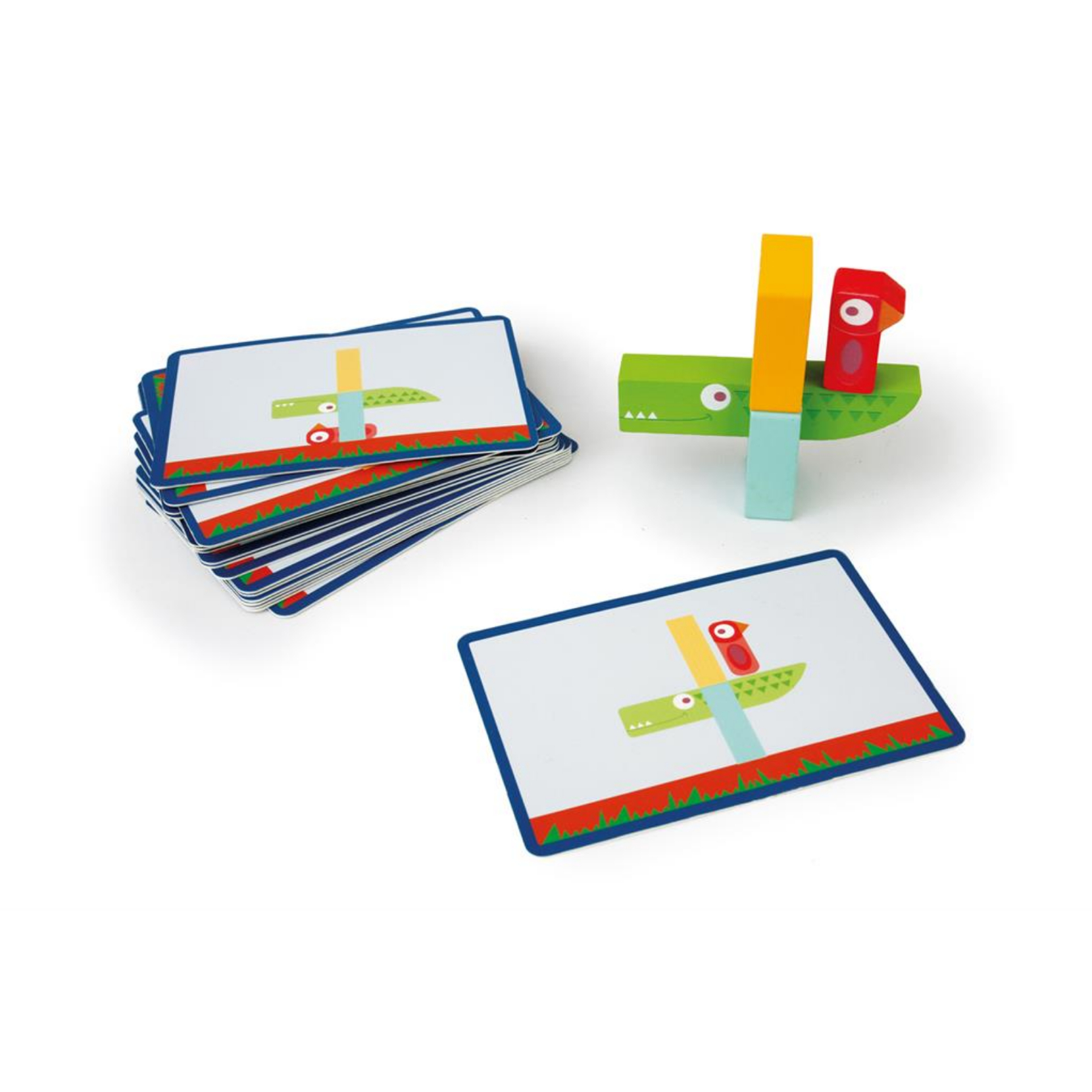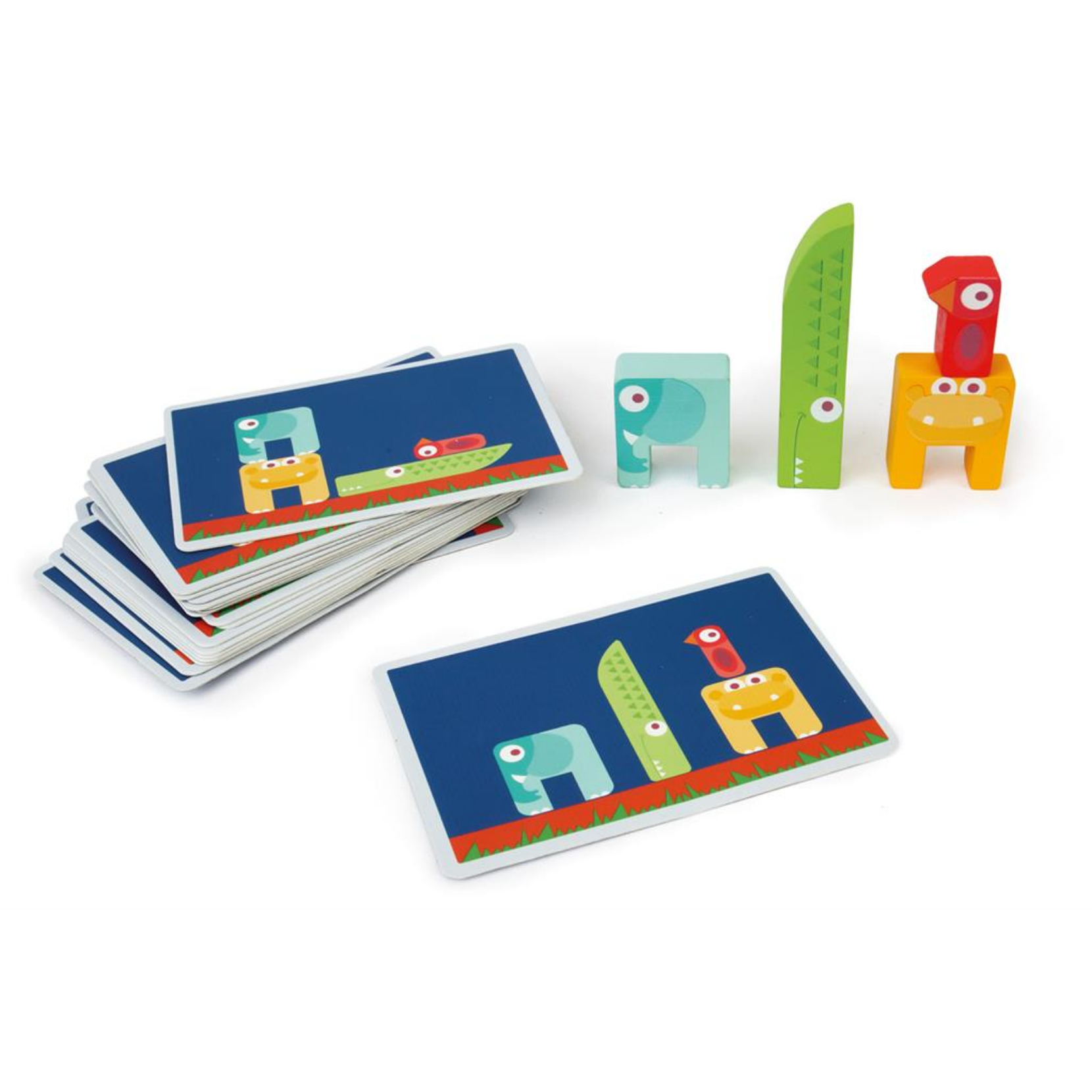 Deze acrobatische diertjes tonen hun strafste stunts. Kun jij ze nabouwen? Stapel en plaats de dierenvriendjes zoals aangegeven op de opdrachtkaarten. Er zijn liefst 40 opdrachten in 2 verschillende niveaus die de moeilijkheid opbouwen. Met Balancio wordt de fijne motoriek, concentratie en hand-oog coördinatie van je kind gestimuleerd.